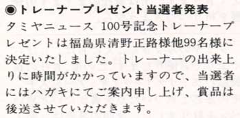 | Vol.100より。「ご応募はお1人様ハガキ1枚のみ」 | Vol.102より。真剣に清野氏を捜そうと思いました。 |