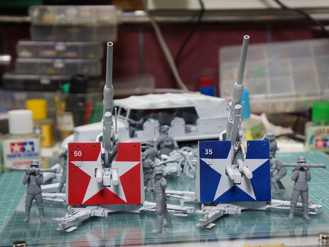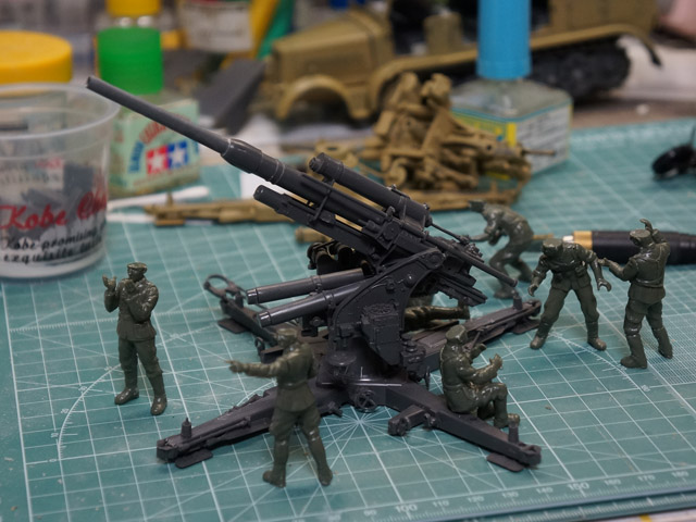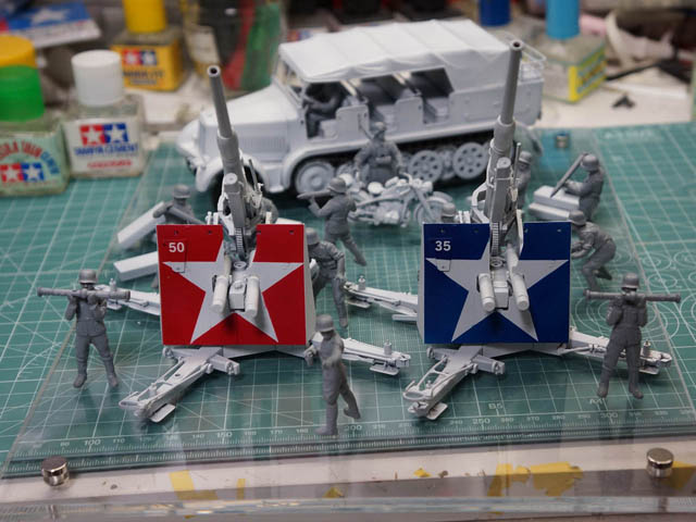 | 40年ぶりの宿題・・・初めて作りました。新鮮な感動です! ジャンクで入手していたもう1台の88mm砲と8tハーフトラックも。 |
