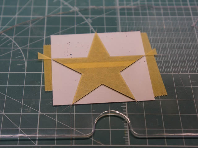 | 原寸大の型紙を作っていらない透明アクリル板に裏から貼って、マスキングテープをカット |