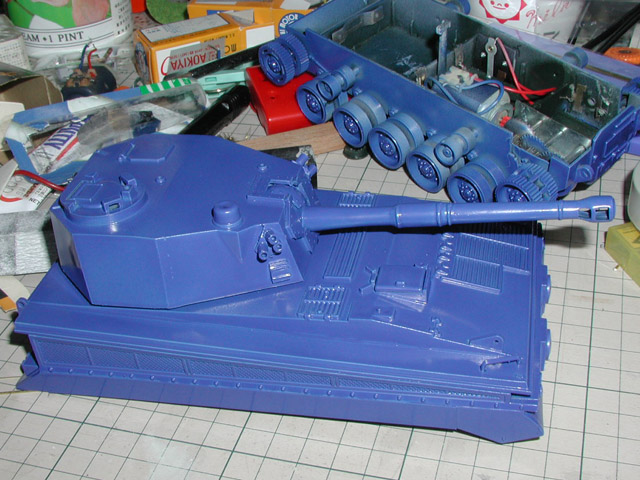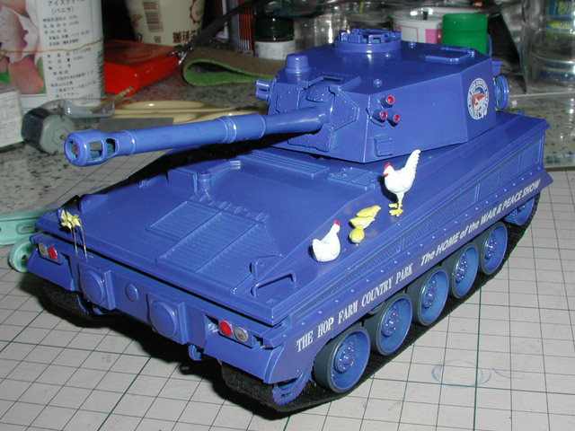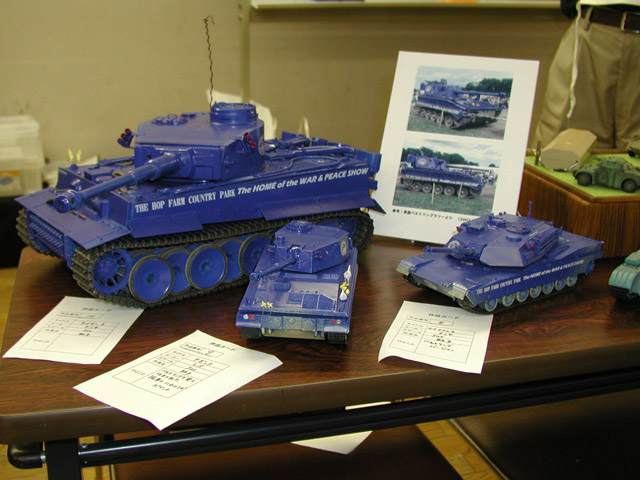| といったわけで動く戦車オフ会2002は突然の青色軍団でした。 右奥には1周間前に発表した「進め!ゴリアテ!!」がありますね |