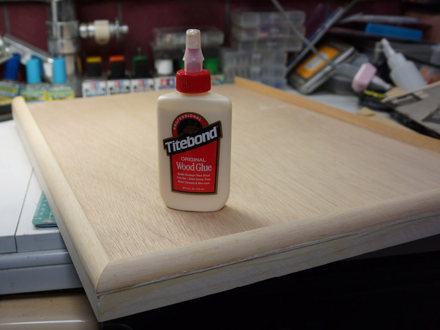 | 同時並行で木製の台座も組みます。新兵器タイトボンドを使ってみました。 |