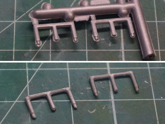 | 手すりは角型で太いものを丸型で細く削ります。真鍮線で作り直してはアジが出ません。 |