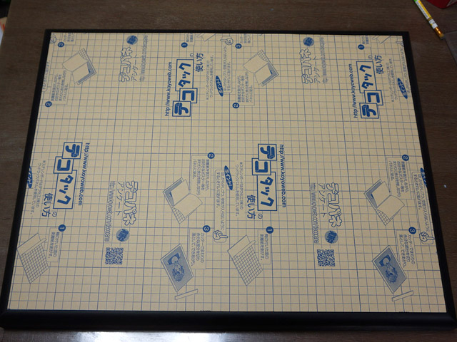 | 糊付きの面を上にして、台座には両面テープで止めることにして仮置き。 |