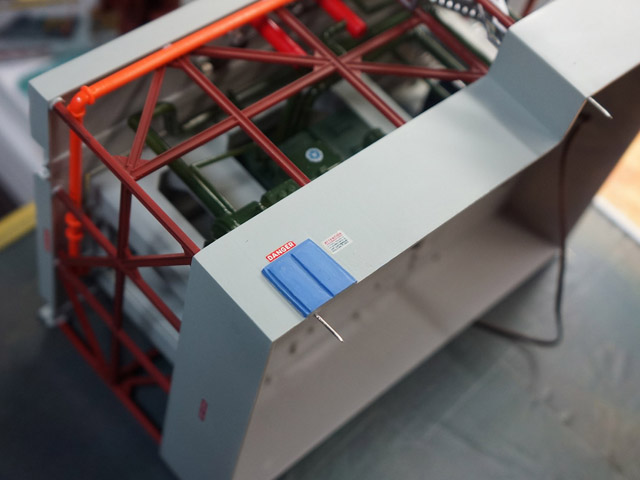 | 原子炉建屋も同様にして虫ピンを固定。これでスチレンボードの台座に差し込みます。 |