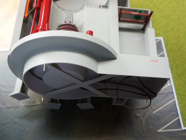 | ピンバイスでタービン建屋の裏側に穴を開け、瞬間接着剤で虫ピンを固定します。 |