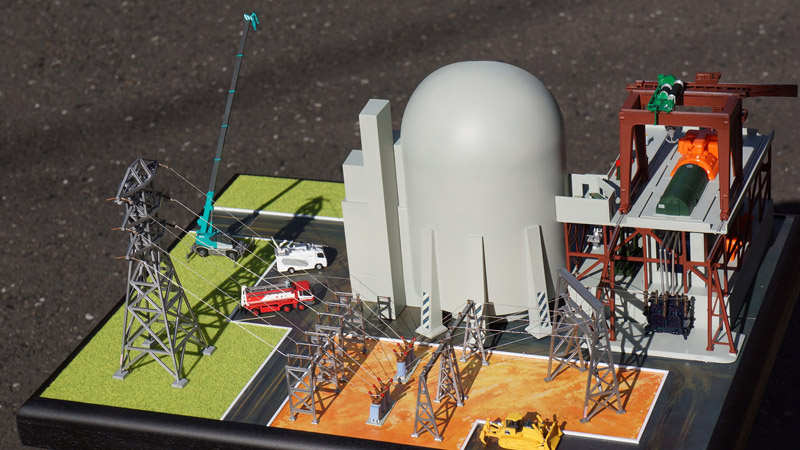 | 低い位置からの撮影です。人形との対比で原発の大きさがわかります。 |