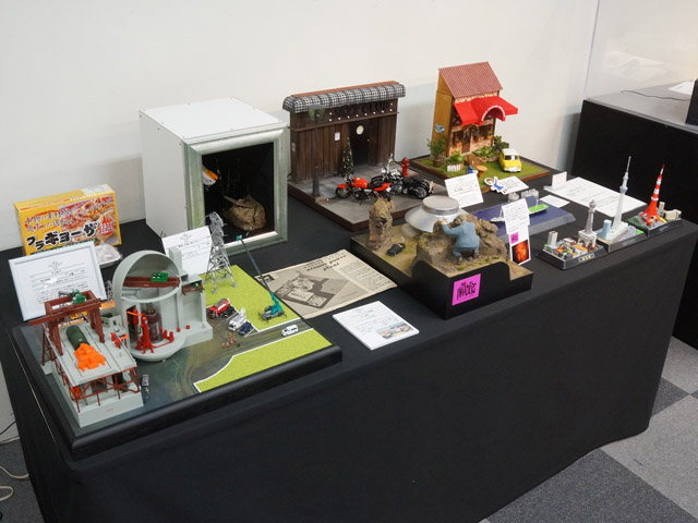 | ろうがんず本拠地であるたまプラーザの東急百貨店「文教堂ホビー」さんに しばらく展示してもらいました。お隣は石坂会長の作品ですね(汗) |