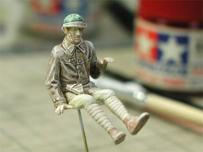 | タミヤ初のフランス戦車兵。マルケン塗りアクリル段階 | エナメル塗料で仕上げる。まだまだ修行が必要です |