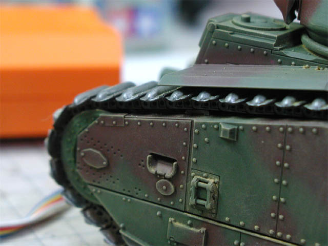 | パステルで汚し仕上げ。リベットも浮き出ていい感じ。 |