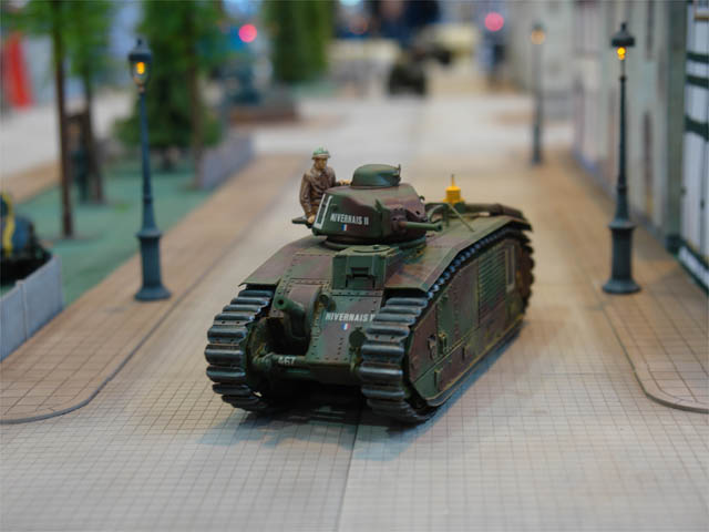 | 目標があるということは実に素晴らしいことで、奇跡的に期日内に完成し、静岡ホビーショーに持ち込んだのです。念のためタミヤサイドに「これこれこういった雑誌の企画でこんなのが出来たのですが、合同展に展示してもいいものでしょうか?」と聞いてみると、「既に会場発表になってますからいいですよ(^_^;)」との暖かい(?)返事。そこで所属する「可動戦車模型愛好会」のブースにこそっと展示させていただきました。 他でもない、まずメンバーから「ずる〜い、ずる〜い」の連呼でした。 タミヤのB1bisのパッケージなどを傍に置いておけば目をひいたとは思うのですが、さすがにそれは自粛。周りに展示してあるのはRCメカがギッシリと詰まり、それをオープン展示してある力作ばかりですので、全然目立ちませんでした(^_^;)。たまにココロある方が見つけると、決まって「え!?これタミヤのB1?なんでここにあるの!?ずる〜い!」となり、事情を知らない子供たちには「気軽に触って楽しめるリモコン戦車」ということで大人気でした。 (2006/06/11) |