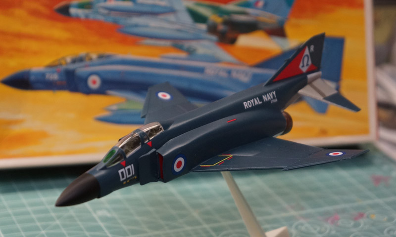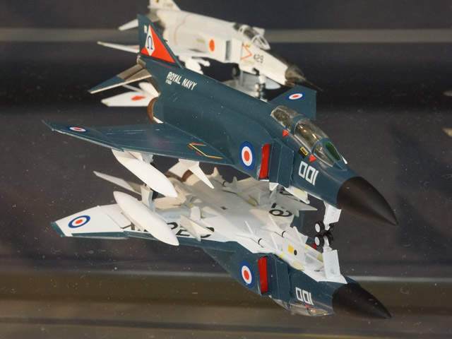 | 当研究室助手のファーストタミヤキットが小学3年製の時に親戚のおじさんに買ってもらった1/100ミラージュとイリューシンだということは何度か書いてきました。これをきっかけにまずタミヤ1/100ミニジェットに熱く熱く入れ込みます。しかし所詮小学生のやることですし、富山の雪深い田舎にはシリーズが全部揃って売っているお店は、当時の小学生の行動範囲にはありませんでした。 駄菓子屋さんや文房具屋さんでいくつか見かけては「欲しい」「欲しい」と思い続けるわけです。ごくまれにB-52Fのような夢の様な出来事もありましたが、結局最後まで揃えることは出来ませんでした。(これが◯十年後にオトナ買いに繋がるのです)。その買えなかったキットの一つが、このブリテッシュファントムでした。当時、お店に売っているのを見た記憶がありません。上田信画伯の描く夕映えに光るブリテッシュファントムの紺色の機体のボックスアートが特に印象的でした。 ある日、となり町の親戚のおじさんの家から歩いて帰る(1時間以上かかったと思います)途中の道端で、そのとなり町の見知らぬ歳上の少年と初めて出会って「一緒に遊ぼう」と友だちになりました。田舎ではままあったことです。それでその子の家まで遊びに行ったら、なんと!縁側にブリテッシュファントムの空箱が置いてあったのです!もう作った後だったのですが、異常に興味を示す(笑)私に対して「箱だけでいいならあげるよ」と初対面にもかかわらずもらってしまったのです。嬉しくて嬉しくて、帰宅したら早速集めてあった空箱のコレクションに組み入れました。 その後、高校生になる頃に全てのミニジェットを揃えようと頑張ったのですが、このブリテッシュファントムのみが全く再販されず、私にとっても正真正銘の幻のキットになってしまいました。初めて手に入れたのは大学生となって東京に出てきてからです。その後、バージョン違いで複数個揃っていくのですが、もったい無くて作れませんでした。絶版キットとしてのブリテッシュファントムの考察はこちらをご覧ください。 そこに降って湧いたのが「池袋東武タミヤモデラーズギャラリー2013」でした。この中で、私も所属する石坂浩二さん取材の模型サークル「ろうがんず」が毎年テーマ建てて展示をさせてもらっているのですが、この年のテーマが、私の強い希望が通って「1/100ミニジェット“愛”コンプリート」展となったのです。ほとんどが絶版キットになってしまっていますが(10種類はコンバットプレーンシリーズとして入手可能)、富山ブラックホールからコンプリート1セットをろうがんず事務所に送りました。正直、思い入れのあるイリューシンなどはバージョン違いも含めると10機以上所有しており一生作り切ることが無いのは明白なので、こういった機会はまさに天からの授かりものです。メンバーが揃ったところで担当キット決めを行いました。まずは各自で希望キットを言ってもらい基本的に第一希望で決定、都合により来られなかった方やなんでもいいですよ〜という方には、強制的に割り当てられます。皆さんが意外に?敬遠したのがB-52Fです。とんでもないお宝キットなので責任重大なのと、その大きさですよね。最終的にはプロの原型師でもあるオーロラモデルの津田さんが担当してくださいました。ミニジェットの魅力は同じ機体でも複数のマーキングがあることですので、余裕のある方はマーキングを変えてどんどん作ってもらいます。全28種類のシリーズですが最終的には40機以上が揃いました。まさに「コンプリート展」です。私はテーマ責任者でもあったので役得でこのブリテッシュファントムとB-52Dシルバーフィニッシュの担当になりました。 塗装して完成させるわけですので、初版のブルー成型色はさすがに使えず2版目の仕様になりました。40年の思いが目の前にあります。全28種類でキットは全てコレクションで揃えていますが、実は未だに作ったことがないのが5機ほどありました。その中の2機を作ったことになります(実際にはB-52Dを2機同時に作ったので合計3機)。 石坂会長からは「改造するとしても1日程度で終わる範囲」という厳しいレギュレーションが与えられています。もとより私としてもオリジナルを崩すつもりなど毛頭ありません。ちょっとしたアクセントとしてエアーインテークカバーを自作した程度にとどめ、デカールも赤と黄色の細切りラインデカールを少々使った程度です。 メンバー全員の進捗状況を伝え合うことを主眼に、製作途中画像をメールで交換し、私がまとめてWebサイトにUPしていきました。「お!相変わらず◯◯さんは早いなあ〜」「凄い!そこまでこだわって下準備ですか!」「え??まさかの筆塗り!!」「おお!遂に石坂会長の登場だ!」「まさかあの塗装にそんなヒミツが!」「そんな恵まれた環境の工作台を使っているんですか!」「米国会員はもう完成して発送済みですよ」「相変わらず□□さんは途中画像を一切送