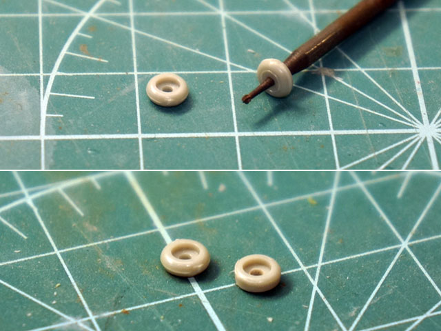 | 前輪の形がソロバンの玉形だったのでリューターにかけて削りました。 |