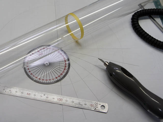 | 本格的な制作が始まりました。手に入ったのは正確な2面図ですが、平面図がありません。 最初に手がけたのは地下室にある圧力抑制室です。ドーナツ型をしているので、当時何度もイラストなどで見た人が多いと思います。格納容器内でトラブルがあって高圧になれば、8本伸びた足の先に付けられた巨大なドーナツ型の部屋に送り込まれ、ドーナツの下部に貯められた水の中に噴射して冷却して液化し、減容して圧力を下げる働きがあるのですが、まさかのメルトダウンまで対応できなかったのは御存知の通り。ドーナツはトーラスとも言うので、「トーラス室」「サプレッションチェンバー」「サプチェン」などと現場の作業員は呼んでいます。 この圧力抑制室は巨大なドーナツ型ですが、丸い管を曲げてあるのではなく、上から見ると正24角形になっています。図面を引いて長辺31mm、短辺19mmに管を斜めにカットし、互い違いに並べて輪にすることになります。薄い透明塩ビ管なのでカッターナイフでの切断が非常に困難ですが、こんな時に活躍するのがレーザーカッターです。多少の熱を持つので切り口に溶融跡が出るのですが、実物も溶接してあるのであえてそのまま残しました。 ところで自作するのに正確な球体を探すのが重要と書きましたが、同じように重要な形をしているのが格納容器のフタです。この形を自作するのはほぼ不可能なので、この形を探します。東急ハンズにはもう無いので、薬局や100円ショップなどを何軒も回りました。それこそ本当に夢に出て来そうでした。そんな中、薬局で「この形だ!」と思って購入したのが、あるジェルムースです。直径が4mm程足りませんが、とりあえず何とかかならないか購入しました。結果は残念ながら使用不可、周りにプラバンを巻いての直径増しも考えたのですが、どうしても無理があります。薬局周りが続くことになりました。 (2014/01/13) |