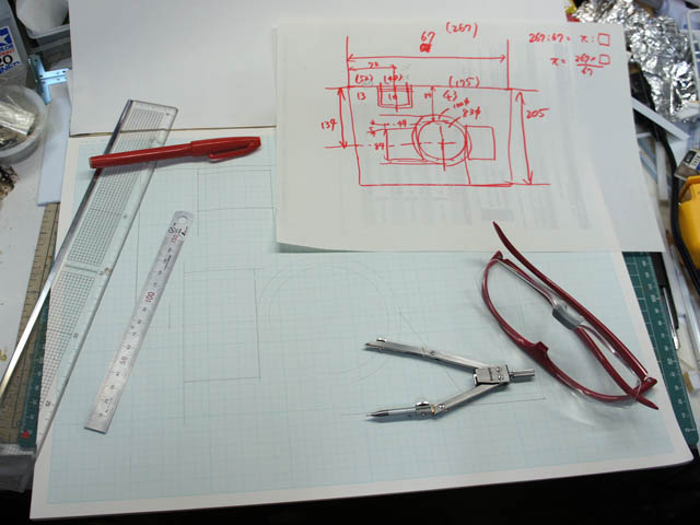 | いよいよ締め切りまで1週間となりました。何度も経験していますが、こういった雲をつかむ様なフルスクラッチは「締め切り」があることが重要です。計画が立てられないなりにも考えるからです。そしてこの日は初めてソーシャルメディアコミュニケーションのmixiに「実はこういったものの製作中です」と初めて公開した日でもありました。 基本的に顔がわかる方だけの公開の場でしたが大きな反響があり、大いに勇気づけられました。この日からの1周間はmixiに公開したので後戻りできないという退路を断ち、なおかつ大勢の友人・知人・先輩からの激励やアドバイスに支えられました。 繰り返しますが、入手できたのはあくまでも2面図(正面図・側面図)であって平面図がありません。しかも各フロアごとに並びがいろいろと違います。今でこそ東京電力のWebサイトに各フロアの平面図が載っていますが、当時は公開されておらず、限られた情報から導いていきました。型は違いますが震災直前に柏崎刈羽原発の内部を取材できて、構造を理解していたことも大きな助けになりました。 今回の模型製作を通して改めて確認できたことは、1階から5階まで貫通している吹き抜けの存在です。1階の大物搬入口から入ってきた核燃料専用輸送容器を大型クレーンで一気に5階まで吊り上げるために、元々開口しているのです。使用しない場合は安全のために蓋をされることもありますが、この吹き抜けの存在により建屋に充満してしまった水素の流れなどが推察できます。事故当初は情報が公開されなかったことから、原子力の専門家でさえこの吹き抜けの存在を知らずに解説する人もいました。後日談ですが国会事故調の元委員が1号機の建屋内4階を調べたいと言ったら、東電担当者が「窓もないので真っ暗です」と説明したことが大問題になりましたが、これなども吹き抜けの存在を双方とも認識していれば、こんな事にはならなかったはずです。 5階は燃料操作の総本山ですのでオペレーティングフロア(略してオペフロ)とも言われます。ここの壁は4階までとは違い、厚いコンクリートではなく鉄骨トラス構造に壁が貼り付けてあります。そのため今回の不幸な水素爆発では弱い5階部分だけが骨組みを残し吹き飛んでしまいました。ちなみに同じく水素爆発した3号機は5階部分の壁の作りが1号機と違い強いので、より圧縮された形になり、大爆発になってしまいました。これも構造を理解していれば一次情報だけでもその違いを読み解く事が出来ます。今回の模型では東電が公開した爆発後の写真や、自衛隊のヘリが撮影した動画をビデオに撮り、ストップモーションで画面をデジカメ撮影するというアナログな手法で資料を集めました。おかげでトラス構造の違いも完璧に把握出来ました。 土曜の夜になって「とりあえず1回目の塗装をしよう」と突然なったのですが、こんな時に限って手持ちの塗料にそのものズバリの色がありません。調色すれば出来るのですが、そのあとも何度も使い続けることを考えれば市販の特色を使いたいところです。こんな時は捨てる神あれば拾う神ありです。デッドストックで所有している40年前の模型専用塗料レベルカラーから取り出してきました。40年前の塗料が本当に使えるか不思議に思う方も多いとは思いますが、専用のうすめ液を使えば、エアブラシ塗装する分には何の問題もありません。むしろ福島第一原発が誕生した昭和46年当時の塗料に近い経年ですので、小さなこだわりにもなりました。 (2014/01/13) |
