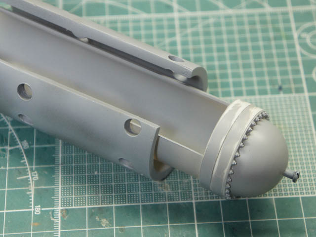 | 一部透明素材で作っていた圧力容器も下地塗装すると形が見えてきます。 |