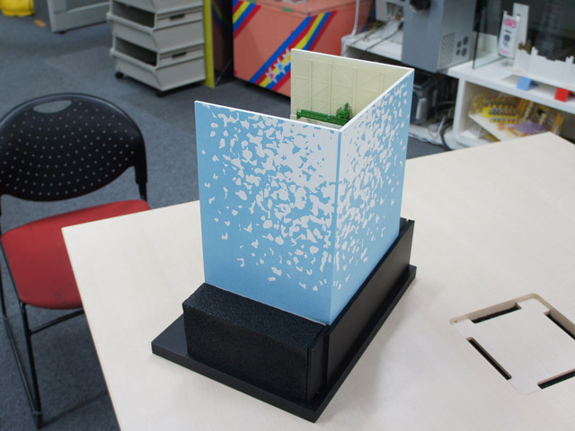 | 外壁の模様は、本物の画像を静岡クリエイトのプラ子さんにメールで送り イラストレーターでトレース&リプレイスしたデータを送ってもらいました。多謝! |