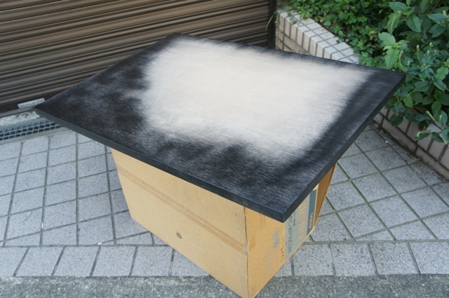 | B1というのはこんな大きさ。これも当然缶スプレーで処理します。 ガレージの前で、人通りが無い早朝にシュッと一吹き。2日間かけて3度吹きしました。 実はこのあと段ボール箱を片付けたら地面に・・・・以下自粛 何歳になってもナニをやっているのやら・・・・・・ |