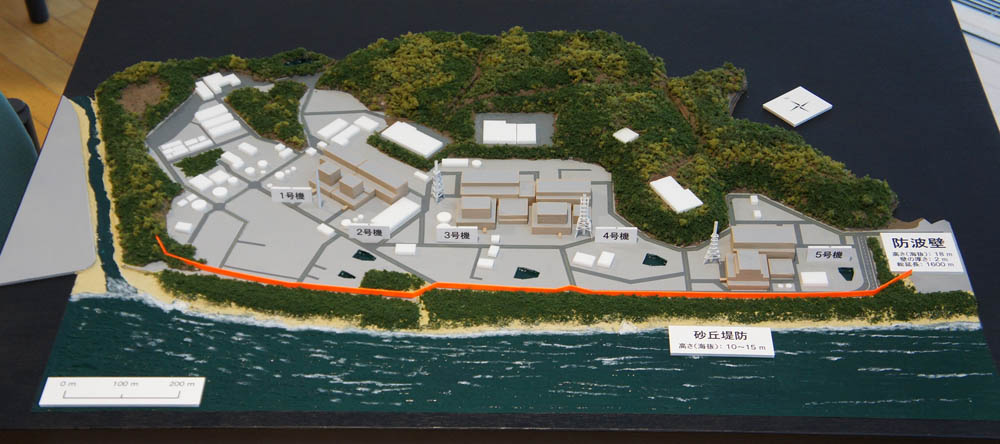 | 手前にあるスケールで、浜岡原子力発電所の敷地の広さがある程度わかっていただけるのでは? |