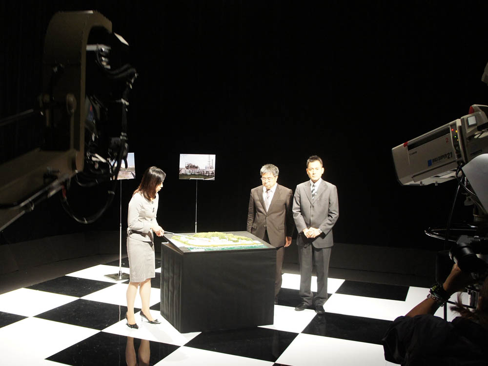 | 本番直前のリハーサル風景。 ☆静岡朝日テレビ 2011年12月6日 19:00〜20:00 「徹底検証!静岡を襲う巨大地震」 視聴率22.1% |