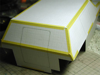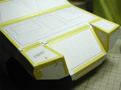 | 丁寧にカッターナイフで切断。 | マスキングテープで一気に組んでみます。 |