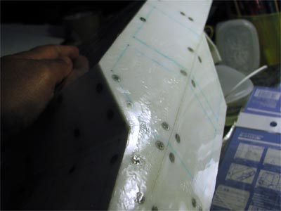 | 順調に透明プラバンを貼っていきます。 | 接着剤の流れ込み具合も良くわかりgood!・・・おや? |