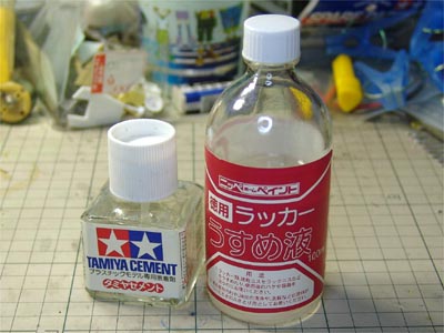 ノーマル版のタミヤセメントがドロドロしてきてしまったら ラッカーうすめ液を使うとgood!・・・のはずでした。 |