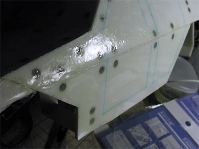 | ついに5月の声を聞いてしまいました。この日は土曜日ですので、合同展まで丁度2週間という事になりました。 前日にボディー表面のビスの頭を瞬間接着剤で埋めましたが、念には念を入れて全面にプラバンを貼る事にします。これは万景峰の時にも行った手法で、これによって材質の均一化も図られ、塗装の下地としても効果的です。前回は0.3mm白色プラバンを使いましたが、今回は0.2mm透明プラバンを使ってみることにしました。 白色か透明か・・・どちらにも長所短所があります。透明プラバンの場合はなんといっても作業がしやすいこと。多少大きめで切り出して接着し、現物合わせでフチを切り落とす時に下が透けているので寸法出しが簡単です。一番大きな事は接着剤を流し込む時に、どの部分に接着剤が流れ込んでいるか(逆に流れ込んでいないか)がはっきりとわかり、均一な接着が望めることです。さらに言えばもともとのボディーに書き込んだドアやボンネット上の構造物のアタリの線が消えないことや、無塗装の状態では下地に皿ネジの斑点が見えているのもスケルトンモデルみたいでオシャレかな?という軽いノリの考えもありました。 そもそも3mmのプラボードにプラバンを貼る場合の接着剤を考えると、面積があまりにも広いので瞬間接着剤は却下。流し込み接着剤(タミヤですと緑のフタの接着剤ですね)も面全体に流し込むことを考えると、広がる前に乾燥してしまう不安があります(実際に試したわけではありません)。そこで原点に帰って普通のタミヤセメントを使う事にしました。ところで、タミヤですと白のフタのノーマル版タミヤセメント、フタを開けっ放しにしたりしてドロドロになった経験はありませんか?かつてMr.カラーのうすめ液を入れて上手くいった経験があったのですが(最初は白濁するが、数日したら透明になる)、同じ成分と思われたクレオスのうすめ液を使ってみると、完全に分離してしまい上手くいかなくなってしまいました。そこで出てきたのが市販の「ラッカーうすめ液」。これで薄めると、とても上手くいくことがわかりました。今回は基本的にはうっすらと流し込むようにしたいので、調子に乗って「ラッカーうすめ液」を大量に入れ、ノーマル版タミヤセメントなのにシャブシャブという特製接着剤を作ってみました(これが後で考えると大失敗の原因)。 早速作業を開始。片方のフチを合わせて、大きめの透明プラバンを貼っていきます。特製接着剤はドロドロすぎず、かといってすぐに蒸発もせずに上手く流れ込んでいきます。そしてその様子が透明プラバンを通して手に取るようにわかります。「完璧だ」・・・。この思いは30分もしないうちにガラガラと音を立てて崩れ落ちていきました。ボディーの側面は1枚板で局面に馴染ませなくてはならないので、大量に接着剤を流し込んだのですが、これがいつまでたっても乾かないのです。指で表面を押すと、プラボードと透明プラバンの間でフニャフニャ動いています。それどころか恐ろしいことが起きてきました。なんと透明プラバンの内側がドロドロに溶け出し、その荒れが表面にそのまま浮き上がってきたのです。元々プラボードだけでも十分平滑だったのですが、より美しくするために念のためと行った作業で完全に裏目に出てしまいました。 いつになったら乾くか見当も付きません(実際は丸2日待つ事になりました)が、乾いたところで全体にペーパー掛けをしてパテ埋めするしかないという、なんとも本末転倒な事になってしまいました。後でわかったことですが原因は2つありました。まず「透明プラバンというものは白色プラバンと成分が全く同じで透明なだけ」と思っていた私の大前提自体に誤りが合ったこと。具体的にはわからないのですが、透明プラバンの方が明らかに硬く、接着力も悪いようです。極論すれば「全く別の材質なんだ」くらいに思っていた方が良さそうです。そしてもう一つは「ラッカーうすめ液」の入れすぎ。商品名は「ラッカーうすめ液」ですが、これはいわゆるラッカーシンナーですので、それだけでプラモデルの成分であるスチロール樹脂を溶かしてしまう強力な接着剤でもあるのです。ドロドロになった接着剤を薄めるために少々入れるのはいいのですが、薄いプラバンに対して大量に使うと荒れが表面にまで及んでしまうのは十分考えられたことでした。また、広い面積で覆ってしまったので余剰になった接着剤が空気に触れることが出来ず、内部で行き場を失って乾燥できなかったのも計算外でした。 時間がないギリギリのスケジュールなのに、締め切りが目前に迫ったところでまさかのトラブル・・・。これまでコツコツと積み上げてきたものはどうなるんだ?・・・絶望的な気分になりました。 (2004/08/02) |