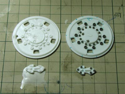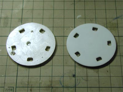 | 色々と平行して作業を進めなくてはなりません。まずは一昨日作ったシリコーン型が上手く固まっているかチェックします。白く光っている表面をとりあえず指で押してみると、いい感じの弾力があります。そこで漏れ防止のマスキングテープを剥がしてから、バキバキとまわりの枠を壊していきました。最後にシリコーン型をむんずと掴んで、慎重にえいっと台座から剥がすと、あら?ホイル原型がシリコーン型にくっついてしまっていました。 ここで焦ってはいけません。これまた慎重にニードルを使って原型を外します。するとどうでしょう、白い弾性のある見事なシリコーン型が姿を現せたではないですか・・・。こうなるように見よう見まねでやってきましたが、ホントにそうなってみると感慨も一入です。いよいよこれからレジンの注型に移ります。 当初ワタシが購入していた物は「クリスタルレジン(2液性のエポキシ樹脂)」というものでした。「レジン」という単語が頭の中で一人歩きしたまま購入したのですが、自宅で封を開ける前に説明書を良く読むと「可使時間:70分、離型可能時間:24時間」と書いてあるのです。どう考えてもおかしい・・・これではヒンジを10個作るのに10日もかかってしまう(爆)。いくらなんでもそんなに時間がかかるようでは、誰も複製なんてしないはずだ・・。ホントに時間が無い時でしたが、改めて東急ハンズへ行き、ようやく本来の目的の物を探し当てました。 レジン(無発泡ウレタン樹脂)は、基本的には2種類の液体を混合して使います。A液・B液を混合したら1〜2分でシリコーン型に流し込まなければなりません。そして硬化するまでわずか10分ほどしかかからないという特徴を持っています。今回ワタシが新たに購入した物はA液・B液を体積比で同量混合するものでした。それぞれ専用のスポイトを用意し、100円ショップで購入したプラスチックコップにそれぞれ同量取って、別のプラスチックコップで一気に混合してシリコーン型に流し込みました。そして先程外したばかりの台座をフタ代わりにして上から押さえました。 待つこと10分程で良かったのですが、念のため30分ほど待ちます。そ、その時でした・・・あっ! なんとA液・B液を入れていたプラスチックコップの底が溶けて抜け落ちてしまったのです!!こういった薬品の容器にはポリプロピレンが強いことは知っていましたが、そうだと思って100円ショップで購入したプラスチックコップの成分表示を見ると「スチロール樹脂」と書いてあるではないですか。スチロール樹脂であの薄さでは溶けるのは当たり前です。熱も持っていました。このあと、当研究室助手は近くのスーパーに「コーヒーゼリー3個入りパック」を買いに走る事になりました。 思わぬトラブルがありましたが、本体の方は十分時間が経ったので、えい!やぁ!とフタを外すと、肝心のレジン複製品がこれまたフタの方に貼りついてしまいました。レジンを流し込んでフタをする時に、フタに離型剤スプレーを噴射するのを忘れていたのです(せっかく高いお金を出してスプレーを買ったのに・・・)。「ええい、ままよ!」とカッターナイフの刃を入れて剥がすと、バリッと取れました。 ついに、ついに出来たのです!・・・生まれて初めてのレジン複成品は、裏側に大きな気泡が入った物になってしまいましたが、表側から見るとまずまずです。1回目のこの成型品はおそらく使えませんが、なんとかメドは立ちました。色々ありましたがホッと胸をなでおろした瞬間でした。 (2004/08/10) |