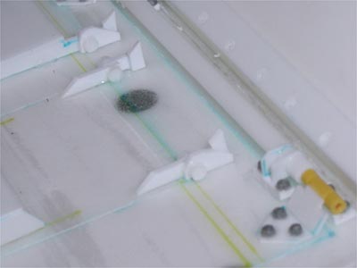 | 4日前に切り出したプラペーパーをここで接着。 | 厚さは0.14mmしかないので、こんな感じ。 |
