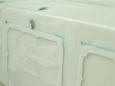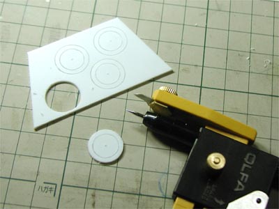 | 四隅(五隅)にサークルカッターで切り出したパーツを接着。 | エバーグリーンの1mm×2mm棒を間に接着。 |
