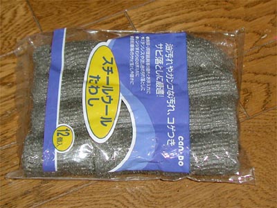 | そこで登場!100円ショップのスチールウール。一生分? | ただひたすらゴシゴシとこすります。 |