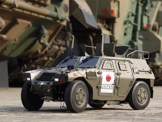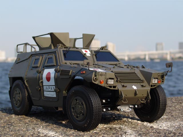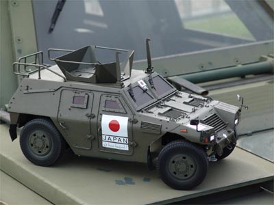 | 採寸、撮影とお世話になった軽装甲機動車試作車両のボンネットで。 |