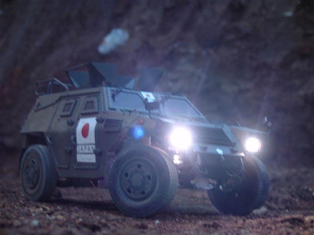 | 水モノオフ会も無事終了し、翌日からこそっと帰省していた助手でしたが、まさにその日の7月20日(火)、東京は観測史上最高の39.5℃を記録したんですね。「良かった〜、そんなの経験しなくて〜」と当時は思ったものですが、その後「あの日は暑かった」という話題が仲間内で出るたびに、ちょっと残念な気持ちになるのですから勝手なもんですね。 その後、東京に戻ってようやく時間が取れたのは7月26日(月)の午後。「ちょっと外で撮影してみよう」と思い立ったのはいいのですが、この日に限って曇天です。「BESTではないけれど何か撮れるだろう」と思って行動開始。実は近所にアパートを取り潰して住宅工事をやっている場所がありまして、丁度更地になったばかりだったのです。この日は工事がお休みらしく、どなたもいなかったので、ちょっと中に入れてもらいました。撮影後の感想は「う〜ん、まあまあなんだけれど、ちょっと違うかな〜」ですね。 やっぱりイラクサマワへの派遣車両なので砂漠に近い環境での撮影がいいですよね。「どこか邪魔にならないところのグラウンドなんてないかな〜」と例によって事前にDr.スクラッチさんに相談してあったのですが、「いいところがありましたよ〜」と教えていただいていたのが、多摩川の某河川敷にある野球グラウンド(念のため、かつてのジャイアンツの練習所ではありません)。今後、いつ時間が取れるか分らないので、「え〜!今からですか〜!」と驚くDr.スクラッチ氏を拝み倒して向かいました。 たどり着いたのは午後4時近く。ただでさえ日が傾きかけている時間の上に、相変わらずの曇天で太陽が見えません。幸い平日の夕方前ということでグラウンドには誰もいませんでした。実はDr.スクラッチさんは本業でカメラマンもなさっているかと思えば、RCカーの操縦もお手の物という謎のご職業。今回は「走行中の画像を撮りたい」ということで、助手が操縦し、Dr.スクラッチさんが自前の一眼レフデジカメ(プロ用機材です。カッコいい〜!)で撮って下さいました。 とっても充実していたのですが、最後まで太陽は顔を出してくれません。「今日はありがとうございました。帰りましょうか」とトボトボ車に向かった時に、ほんの一瞬だけ夕日が顔を出したので撮ってもらったのが、上の画像です。そのまま近くのファミレスに入り、反省会(?)となりました。 ほんの数日前までは1日のうちで太陽が隠れる瞬間の方が貴重だったのに、上手くいかないものです。すっかり日が落ちてから帰宅した助手ですが、ふと思い立ち、例の建築現場で再撮影してみました。今度はちょっと面白い画像になりました。 これであきらめてしまったのか?いえいえ・・・2日後に、再び突然動き始めたのでした(^_^;)。 (2005/02/03) |