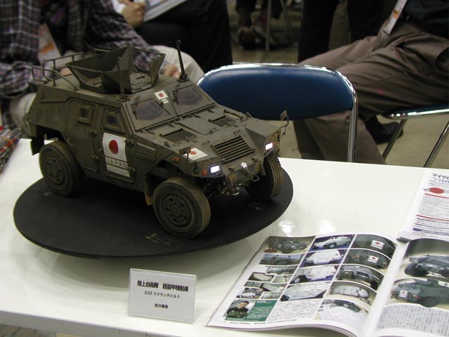 | 気持ちよく撮影できた当研究室助手はもう怖い物ナシです。丁度1ヵ月後に東京ビッグサイトで行われる「ワンダーフェスティバル2004夏」に、大胆にも持ち込む事になったのです。 ワンフェスといえば、当研究室助手にとってとてつもなく敷居の高いイベントだったのですが、数年前からアーマーモデリングがブースを出すようになって、一気に入りやすくなりました。そう、そのアーマーのブースに展示してもらえる事になったのです。 ほんの半年前までは、まさか自分がワンフェスの作品展時側になるとは思いもしなかったのですが、勢いとは怖い物です。一人前にブースの内側に立って来場者に説明までして、いっぱしのディーラー気分まで味わわせていただきました。仕事の関係で最後までは会場にいられなかったのですが、当研究室助手が会場を出た後に、なんとあの大塚康生先生がブースにいらっしゃり、軽装甲機動車をご覧になったというのです。しかも「よくできてるねぇ!」と褒めて下さったとか・・・あわわわわ・・・・なんだかまた、いきなり「あがり」に向かっている・・・(^_^;)。 こうなったら、ホントに怖い物ナシだ!・・・と、当研究室助手は秋にさらに大胆な行動に出たのでした・・・。 (2005/02/11) |