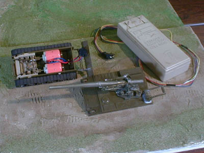 | その後、縁あって当研究室助手は時間を掛けて新たにロングトムの2版、リモコン版、初版と入手しコンプリートしていきます。そして2000年5月の静岡ホビーショーで「可動戦車模型愛好会」のブースに展示するため、リモコン版のジャンク品をレストアしました。ちなみにこの時の静岡ホビーショーで「田宮模型全仕事1」が会場限定先行発売になっています。 未組み立ての完品も所有していましたが、当然もったいなくて作れません。そこでこういったジャンク品の再生というのもこの趣味の醍醐味になります。今となっては記憶が定かではないのですが、完全じゃない2個のジャンクから「ニコイチ」で再生したのでしょうか?砲身支え部分のパーツの成型色が微妙にダークグリーンがかっており、本体のオリーブドラブ色と色目に差が出ています。砲身はお約束で微妙に左右がずれて接着されていたので、エイヤ!とカッターナイフを入れて分解し、接着し直しました。 レストアのメインは動力の再生です。TKK13モーターはオリジナル中のオリジナル、サーモンピンク色の初版です。そのままではさすがに動きませんでしたが、分解して固まったグリスを取り除き、新しいグリスでブラッシュアップしてやるとほぼ100%復活します。そして問題のモーターコードですが、秋葉原の電気街で購入したコネクター接続としました。ここだけは思いっきりオリジナル無視ですが、完成後の取り回しや、動作の確実性から選択しています。静岡ホビーショーの2週間ほど前に開催された「可動戦車愛好会東京オフ会」に出したのですが、調整不足でスムーズに走りませんでした。 原因はアイドラーホイルにあります。そのシャフトが左右独立しているのですが、支えが甘くグラグラし、ゴムキャタピラのテンションに負けてしまっているのです。そこでプラバンで簡単なスペーサーを作りはめ込めばガッチリ固定され、スムーズに動くようになりました。あとはやはり無塗装ではまずいかと塗装を施しました。この完成品は、のちに「タミヤの動く戦車プラモデル大全」でも改めてスタジオ撮影され、完成品6種類フルコンプリートの揃い踏みとなりました。もちろん全て当研究室所有のものです。あまり歴史的価値の無い内容の更新になりましたことをお許し下さい。 (2014/02/01) |