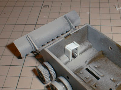 | プラバンで簡単なスペーサー。これで完璧です。 | とりあえずサーフェイサー吹きで色の違いをカバー |