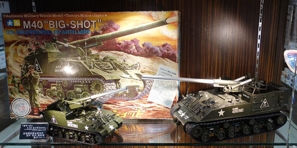 | 皆さん既にご存知の様にタミヤから素晴らしいキットが発売になります!そう1/35MMシリーズNo.351「M40ビッグショット」です!! 2016年9月のある日、何の前触れもなく田宮俊作会長から宅配便が届き、開けてみるとなんとダンボール箱内側にプチプチ緩衝材を入れただけでランナーがぎっしりです いわゆる発売前のホワイトパッケージになる前の「テストショット」でした。あとで聞いたら国内に到着した最初の7ロットのうちの1つでした。 実は届いたのは9月24日の全日本プラモデルホビーショーの数日前でして、まさにホビーショー展示のための貴重な貴重なロットだったのです。 ビッグショットに関してはこのページをご覧になる方には説明不要のタミヤの歴史を語るモンスターキットです。 1/21M40ビッグショットの発売は1963年7月。定価1500円、総部品数440点、二つのハンドルを回すと鈍く銀色に光るアルミパイプの砲身が上下左右に自由に動き、弾丸発射に薬莢排出ギミックまでついた大型自走砲がリモートコントロールで自由に走り回る・・・まさに「伝説」にふさわしい内容で、当時の多くの子供たちにとって「買ってもらうどころか、おもちゃ屋の高いところに置いてあって触ることも出来ず眺めていた」夢のキットだったのです。拙著「タミヤの動く戦車プラモデル大全」でも堂々の表紙の真ん中を飾り、本文も見開き3ページを使って紹介しました。1963年3月生まれの当研究室助手にとっては同じ歳のキットであり、物心ついた時は既に絶版ながら隣町のおもちゃ屋の高いところに展示してあり、もちろん買えなかったという思い入れたっぷりのキットです。詳しくは「タミヤの動く・・・」をご覧ください。 あれから53年の月日が流れ、タミヤは遂にビッグショットをそれも国際スタンダードスケールの1/35で出してくれたのです。そのテストショットが届いたからには死蔵させては意味がありません。「私こそが表現したい」やり方で組むことにしました。そう「オマージュ1/21ビッグショット作品」です。“実車”に限りなく近づけるのではなく、“1/21ビッグショットのキット”に限りなく近づけるのです。もちろんモーターで走るように改造します。お披露目は11月19日のタミヤフェアとしました。 (2016/12/03) |