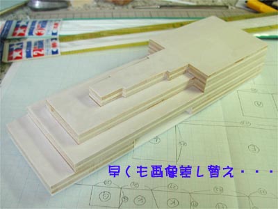 | ついにこの日の正午、製作途中画像を当研究室HPのトップページに公開しました。 もともと更新が滞っていた(^_^;)HPでしたが、何の前触れも無く上記画像が登場しました。 これだけではナニなので、掲示板に下記の文章をカキコしています >でもって、久々にTOP画像を差し替えました >今回も、あくまでも業務ではなく「自己研鑽」の意味で自主的に作り始めました >資料が極端に少なく(当然ですね)、各方面の方々にお世話になっています >図面ひきの真似事もして、試行錯誤の連続です >締め切りを自分に言い聞かせる為にUPしてみました(^_^;) 今読み返しても自分としてはそれなりに危機感のある文章なのですが、初めての方には何のことかわからずさっぱりですね。当然と言えば当然の話ですが掲示板でも何の反応も無く、これに対する初めてのカキコ(それも思いっきり正確に特定したビンゴ!)は2日経ってからのGamoさんでした。 この日は客室部分の天板に0.3mmのプラバンを貼っていきました。表面処理はどのようにするか悩むところなのですが、2年前に1/24トレーラーを板材からスクラッチ製作した時に(早くここに下線が引かれリンクさせたいものです)、パテ、との粉、ジェッソ、瞬間接着剤塗布・・・と表面処理を色々試したのですが結果的にその後の処理が楽で綺麗に仕上がったのがプラバン貼りだったからです。直線切断で簡単なように見えますが、早くも現物合わせで色々と歪が出始め、これを修正するのに数時間かかってます(^_^;)。 さらに船体下部に修正を加えます。基本的に喫水線より下の写真は公開されていないのですが、この船の進水式時の不鮮明な動画がテレビで数秒間公開されていました。このVTRを入手してコマ送りで確認し、船体下部の形状をつかみました。実はバルバスバウ(旧日本海軍の戦艦大和に初めてつけられたという船体下部先端の丸いふくらみ。詳しくは知らないのですが、流体力学的に大型艦の走行性能を飛躍的に高める形状だそうです)があるかどうかさえ不明だったのですが、この動画でしっかり確認できました。フネに少し詳しい方なら、バルバスバウがついてるということを示す世界共通のマークを見ることでわかるのですが、そんな知識は全く無く、後から教えてもらいました(ありがとうございますタミヤの船ファンさん)。同様にバウスラスター(接岸時に左右方向へ移動する補助スクリューのことだと思います)の存在も知り、さらにそのマークまで確認できました。小学校の社会でならった地図記号の警察署のマークそのもので、おそらくそのマークの直下にバウスラスターがあると思うのですが、時間との兼ね合いで修正を断念しました。なんといってもプライオリティーは「間に合わせること」だったのです。締め切りまで実質あと1週間。まだまだ先が見えていなかった時です。 この日は仕事が休みだった為、丸一日この作業に当たったのですが日付が変わった直後のおよそ12時間後に早くも画像を差し替えていますね。当時の掲示板を見ると、この日の作業時間は実質11時間。ハハハハハハハ・・・・・。 |