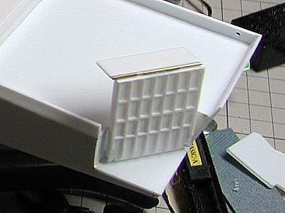 そもそも横棒は1本しかなかったので、上下に1本ずつ 全長数ミリの厚さ1.2mmプラバンの短冊をコツコツ貼りました |