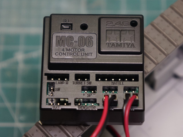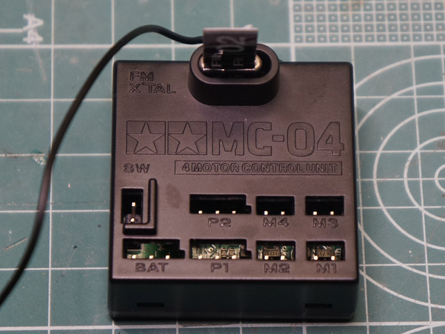 | えい!やっ!とタミヤカスタマーで追加発注した2.4GHzのMC-06ユニット。 ゆらっとした動き出し、エンジン音がスピードにより変化!素晴らしすぎます!! 4chでバトル機能まで持っていますが、今回は2chだけ使います。 |