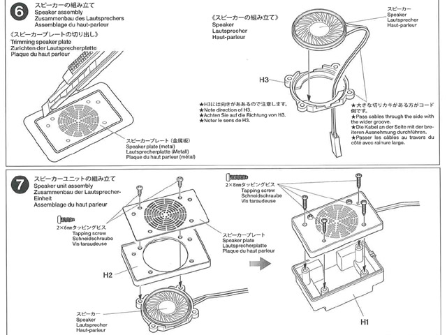 | 1/35RCパンサーのスピーカーユニット。 シリーズの中でスピーカー直径が一番大きいので大きな音がします。 2×6mmタッピングビス2本(スピーカーブレード固定用) 2×8mmタッピングビス4本(スピーカー組み立て用)を調達しなければなりませんが 一部はミニ四駆のビスで代用出来ました。 参考までにタミヤカスタマーで扱ってました 50573-000 SP.573 2×8oタッピングビス(10本セット) ¥108 |