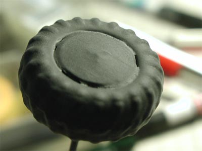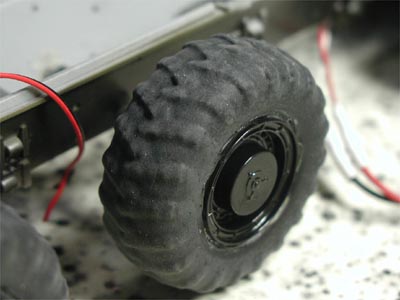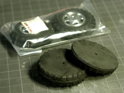 タイヤは当初直径の同じ市販のトラックタイヤを削って 2枚合わせて作ろうとしましたが・・・ |