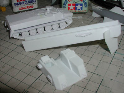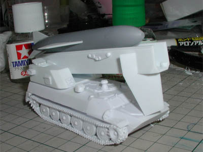 | ミサイル本体の大きさは正確に縮小 | BMP-1の車体をベースにプラバン箱組み |