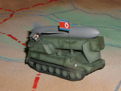 | 今更ながらですが、たまっている宿題の一つ、古い製作日記をUPします。北朝鮮の軍事パレードに出てきたシルクワームミサイルキャリアです。今、見返してみてもハズカシイところだらけなのですが、「こんな事もやってたのね」くらいの気持ちで見ていただければ幸いです。念のためお断りしておきますが、資料的価値は全くありません。 製作は2003年3月ですから2年半も前ですね。当時、北朝鮮で何度かミサイルの発射実験(?)と称して古典小型ミサイルが海岸から日本海に向けて発射されました。例によって、どんなもので、どんな大きさ?がわかればと模型を作ってみる事にしました。この時点ではカイシャのデスクから依頼は無く、勝手に自宅で組み始めたものです。 ミサイル本体の資料は、図面も含めてネットでそれなりに収集できました。ハセガワ1/48の航空機ウェポンセットの中に、測ったように同じ直径のタンクのパーツがあったので、これを流用して作りました。これに陸上固定発射台を作るのでは芸が無いので、自走キャリアも作ってみる事にしました。資料は当時連日TV画面をにぎわせていた北朝鮮軍事パレードの資料映像のみです(キッパリ!)。例によって本格的AFVモデラーの方々から考えれば許しがたい(?)事かもしれませんが、いわゆるデッチアップという言葉があるように、おおらかな気持ちで進めました。 夜の各局のTVニュースをザッピングし、来た!と思えばビデオを回し資料を集めます。実は元映像は「かの国」の配信VTRですので、どの局を見ても同じ映像なのですが、某国営放送は車両が通り過ぎるところまで使っていたので、車体後部の画像がナナメからですが数秒映っていて助かりました。こうして集めたVTRは正味合計1分程。何度もストップモーションにして、TV画面にものさしを当てて採寸するという、とんでもないアナログ方法で進めました。 ところで、肝心のベースになっている車両ですが、例によって浅学なためナニかわかりませんm(_ _)m。西側の車両という事はなく、自国開発もないだろうと考えると、答えは2つ、中国製かロシア製車両です。シルエットや転輪の数から「BMP-1歩兵戦闘車」が、あたらずとも遠からじと判断しました(車体前部の形状は明らかに違うので改造します)。こんな車両が模型化されているのか?と思ったのですが、ウクライナACE社から「BMP-1歩兵戦闘車」そのものの1/72簡易インジェクションキットが日本国内で販売されているのを知って驚きました。 車体下部が1/72スケールで用意出来たので、キャリア部分は写真を見ながら等比等比で寸法を算出して簡単な図面を書き、一気に組み立てました。出来上がってみてナカナカの迫力と思ったのですが、どうもバランスがおかしい・・・調べてみるとキャリアの前方支柱の寸法を間違えていたことが判明し、作り直しました。あとはお手軽エアブラシで、サッと塗装して完成。「この大きさで形になったことが大きいよな〜」と勝手に満足しました。 あれから2年半が経ったにもかかわらず、未だに怪しさ満載です。しかし、その後に新しい資料を入手したわけでもないので、このまま公開します(^_^;)。 (2005/09/09) |