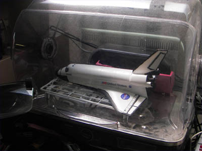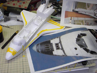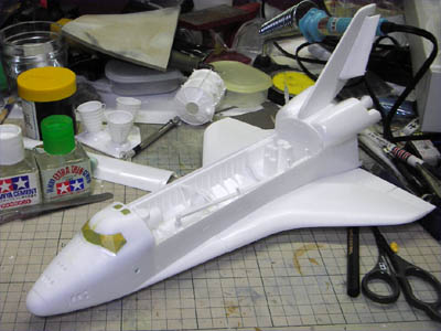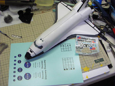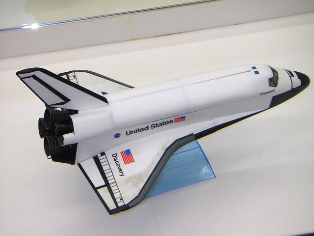 | どんどん製作日記を公開していきましょう。今度はスペースシャトルです。 日本時間2005年7月26日(火)23:39・・・野口聡一さんを乗せたスペースシャトルディスカバリーがフロリダのケネディー宇宙センターから打ち上げられました。初搭乗がMS1(ミッションスペシャリスト1)という日本人初の栄誉ある立場をつかんだ野口さんは、打ち上げ後も数々の困難を冷静に乗り越え、見事な働きをしたのは記憶に新しいところでしょう。 当初2005年5月に予定されていた打ち上げが7月14日早朝(日本時間)に延期されました。例によって今回も誰からも“依頼”は無いのですが(笑)、春に帰省した時に富山ブラックホールにタミヤの1/100のキットが4つも並んでいるのを見て「このままではいけない」と1つ持って帰ってきており、それを組む事にしたのでした。 この時期はどうしたことか、やたら制作意欲に燃えており(?)、たった3週間という期間に、1/35セミスクラッチ高機動車、1/32airfixロンメルグライフなどアーマーモデリング連載用sdkfz250を3台、1/100スペースシャトル、1/72SAM-2ミサイル、1/72スカッドB、そして水モノオフ会2005参加作品を作るという暴挙に出ておりました。 そんなわけでスケジュールだけは詰まっており、このスペースシャトルを組み始めたのが前日の13日(水)。「タミヤの製品なので素組みなら丸1日で十分組める」という考えは正しかったのですが、塗装とデカールに予想外の時間がかかってしまいました。ネットで資料を集めると、打ち上げのディスカバリー号そのものの最新画像が続々と入手できます。半年前に実際にNASAに行ってきたこともあってモチベーションは十分で、色々と考えてしまうんですね〜。結果的には完徹は当然というスケジュールに追い込まれ、明け方に頼みのアルプスプリンタが壊れる(ありがちな話です)というオチまでついて真っ青になったのですが、発射1時間ほど前に燃料センサーの故障で打ち上げ自体の延期が決定しました。 NASAのライブカメラをネットで見ながら「間に合わない間に合わない・・・」と作業を続けていたのですが、途中から画面上で雲行きが怪しくなり、延期の発表。時間軸の幅は違いますが万景峰号と同じケースです。こういったケースではダラダラしないで、最低限の時間で仕上げるに限ります。翌日、アルプス電器のサポートセンターに電話をして簡単なメンテナンスの資料を送ってもらい試したところ、見事にプリンタが復活、最終的に完成したのは16日(土)となりました(翌日からSAM-2の製作開始してますね)。 例によって素組みですので何も見るところは無いのですが、こだわったのが自作デカールです。タミヤのキットはスペースシャトルの初打ち上げ(1981年4月)の前年にキット化されていますので、マーキングが最新のものにアップデートされていません。そこで「discovery」の文字やNASAのマークを自作デカールで再現するわけです。ちなみにNASAのマークは他でもないアポロ宇宙船のデータをそのまま使いました。そしてこだわったのが主翼後端付近の格子状の黒のライン。マスキングでは大変そうなので、これもエクセルで作ってみました。 出来るだけ真正面からの現物画像を探し、それぞれの格子状の枠の幅を測定します。そのデータをエクセルのセル幅にそれぞれ移行してマス目を作り、枠で囲んで、その枠線の太さを調整すれば出来上がり。何度かテストプリントして実際に完成品に当てて縮小比率を決め、最終原稿を完成させました。結果は良好。この「エクセルを使っての自作デカール原稿作り」はまだまだ可能性がありそうですね。 タミヤのキットには翼の表面に耐熱タイルのモールドが施されています。これは各機種ごとにタイルの埋め込み方が違うので、この模型のモデルとなった(試作エンタープライズ号?コロンビア号?)とディスカバリー号とでは異なるのですが、「スペースシャトルはピカピカに磨かれたスポーツカーみたいなものではない」という意味も込めて、ちょっとウエザリングをしてタイルのモールドを浮かせてみました(やり方は大いに研究の余地がありますね)。 その日のうちに完成品をカイシャに持ち込んで美術スタッフに預けておいたのですが、10日後の打ち上げ直後から耐熱タイルの損傷が判明し、予期せぬ形でこの模型も大活躍してしまいました。 それにしても今回の打ち上げではシャトル本体(厳密にはブースターの方ですが)に設置されたTVカメラでシャトル側からの打ち上げの様子がライブで見られたのは新鮮でした。後方に見えたフロリダ半島が見る見るうちに地球の輪郭に変わっていく様は感動的でした。事前に秒単位で打ち上げ直後のスケジュールが発表されていたので、ストップウオッチを片手にTV中継を見つめていたのですが、タイムスケジュール通りに事が進み、「あと10秒で、ブースター切り離し予定・・・3,2,1」とカウントすると、ピッタリとブースターが切り離されていく(あたりまえの事なのですが)のにも