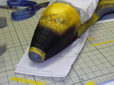 | コクピットを塗装してから組み立てます | ここまでは簡単。ウインドウのマスキング |