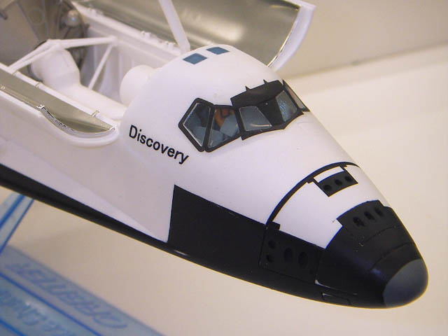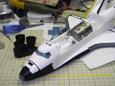 | コクピット内にはオレンジの服装の宇宙飛行士が。黒の窓枠はキット付属のデカールです。 |