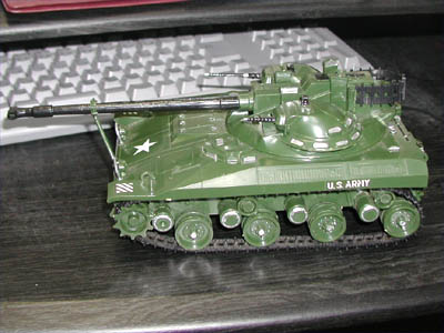 | 静岡ホビーショー2005の合同展に向けてのプレッシャーは相当なものがありました。 他でもない「I LOVE TAMIYA」展のミニチュアを作ろう宣言をしたからなのですが、元々5月に完成させるのはムリなので、どこまでたどり着けるかという目標でした。まさに自分でまいたタネなのですが、結果は公私ともモロモロあって全くの手付かずの日々が続きます。丁度1年前の軽装甲機動車の日記が1年遅れでリアルタイムで感じられる日時になってくると、「ああ、去年の今日は、もうこんな事をしていたなあ〜」とマイナス思考になるばかり・・・。 このままでは何も出来ない、かといって「I LOVE TAMIYA」展のミニチュアを製作途中でも、といってもあまりにも遅すぎる・・・。結局、今年の静岡では「I LOVE TAMIYA」展ミニチュアはバッサリとあきらめ(もちろん何年かかってもやります!)、全く別のものにしようと決めたのが、わずか2週間前(ひどい泥縄ですね)。ふと頭の片隅に引っ掛かっていた事が思い出されたのです。「そうだ!2年前のリベンジだ!」 こうして取り出してきたのが、海外の某オークションで落札した「ITCの1/24AIRBORNE TANK」。40年前の当時のアメリカの子供が作ったと思われるそのままの状態です。全体塗装は無く、塗料は黒と銀色の2色だけを使って部分的な筆塗りです。考えてみれば、作例としてボックストップにある完成写真もそんな塗装でした。お世辞にも上手な塗装ではなく、しかもバリさえ取ってなく、接着剤のはみ出しもかなりあります。しかし、これこそがアジなのです。 ゆっくりと眺めながら、どこまでを可動化できるのか知恵を絞る事にしました。 (2005/06/29) |