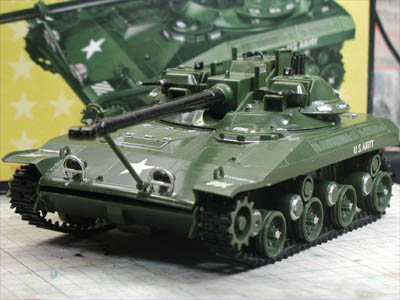 | いよいよ1週間後が本番なのに、「素組み完成品の確認(2)」とのタイトルはいったいどうしたことでしょう? 去年の7日前とは雲泥の差です。いえいえ、この日は早朝から仕事でしたが、終了後に秋葉原へ行って、ギアードモーターや携帯電話のバイブレイター用の超小型モーターなどを多数購入しました。また、各種可動装置の設計方針が立ちました。 まず手がけなくてはならないのが、車体上部の前部が、経年変化もあって反ってしまっている事の修正です。これはドライヤーで熱を加えることで簡単に修正できるかと思いましたが、結果的にはネジを埋め込み、ボルトで固定しました。 そしてメインコンテンツとなる砲塔可動計画です。T92は主砲がシーソー式に上下するので、車体下部の内部床に丸いテーブル状の物を作り、これを上下する事により、砲塔が360度どこを向いていても良いように考えます。さらにこのテーブルを同心円状に3種類のドーナツ型にして上下させれば、接点をずらす事によって砲塔左右の大型機銃も独立上下できそうです。砲塔旋回は可動戦車模型愛好会の方々のお手の物です。Dr.スクラッチさんが「簡単簡単、RCカー用のベルトを上げるよ」と、先の東京オフ会の時に頂戴していました。 メイン動力の左右の機動輪に動力を伝えるギアボックスは、2年前はタミヤの強力ギアボックスセットを使おうかと思っていたのですが、実は車内の高さが低くて使えません。しかし現代は「戦車模型用汎用ギアボックス」という便利な物があるので、なんとかなりそうです。 ポリキャタピラはあまりにもゴワゴワなのでゴムキャタピラに換装を計画。アイドラーホイルが隣のホイルと擦れて干渉しているのも微調整が必要です。確かに遅れてはいますが、計画さえしっかり出来ていればなんとかなる。そう信じていました(^_^;)。 (2005/06/30) |