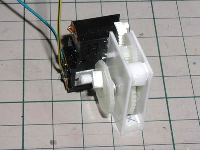 前日作ったダブルギアを手前に置いて 現物合わせで砲身上下用ギアボックスを自作 |